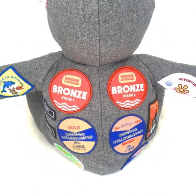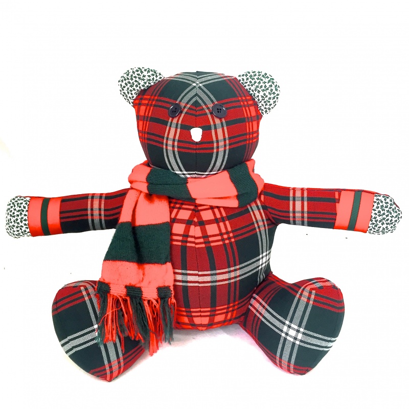 I wanted to write and thank you so much for the care and attention to detail and thought that you put in to making his bear. I fell in love with him the moment I saw him! He is gorgeous! My son loved him too. What a lovely lifetime memory of his time school