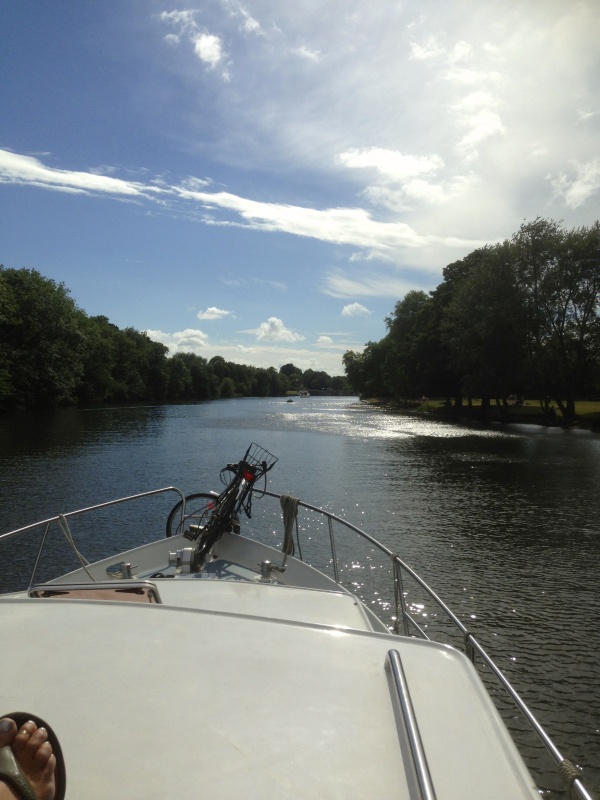 We were really lucky this weekend, to be invited to spend a day on the Thames on a friends boat. It was a beautiful sunny day and we set off near Chertsey where the boat moored to pick us up after a rather stressful M25 journey. Literally the moment I stepped onto the boat I felt myself relax and sat with a wisteria laden bridge behind me ready to set off, glass of wine in hand.