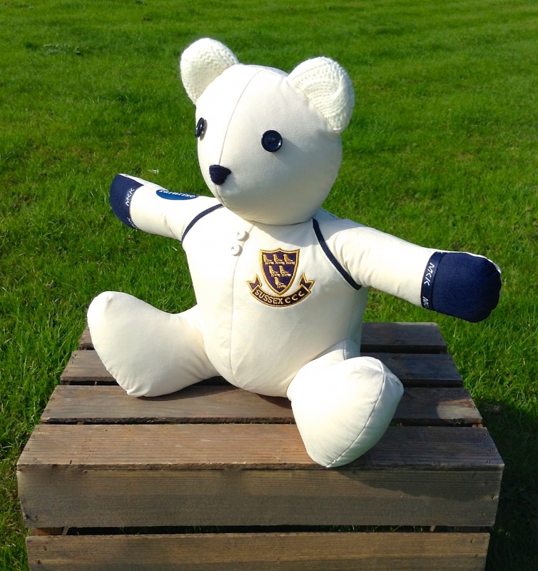 We were thrilled to hear that they loved our handmade bears and we certainly will be keen Sussex and Middlesex supporters in the future! We love making Blazer Bears as keepsakes and mascots for teams from sporting memorabilia. We have made sporting keepsake bears now for cricket, rowing, rugby, football, riding and have even been asked to make a swimming one (including a towel) which should be another great challenge. We can’t wait to increase our portfolio!