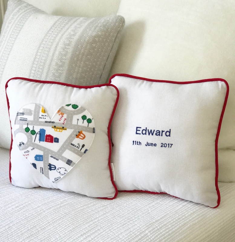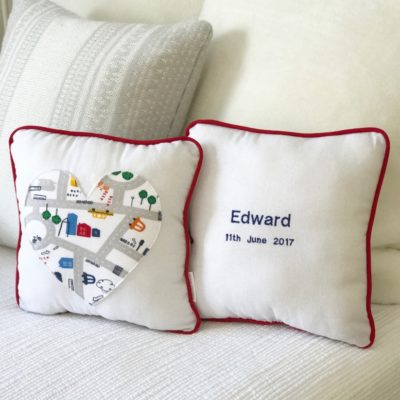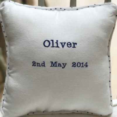 We have had so much fun introducing our new baby keepsake cushion range. We have all had children leaving to go to new schools, start university or go travelling. Spring cleaning has been less of a chore as we all decided to find our children’s favourite baby outfits to make the first prototypes. Having carefully packed them away many years ago, I had forgotten how many I had stored away! It was so lovely to bring them out of the boxes and create something to treasure for years to come. Since then we have made some very special cushions for our customers some of which are featured below.