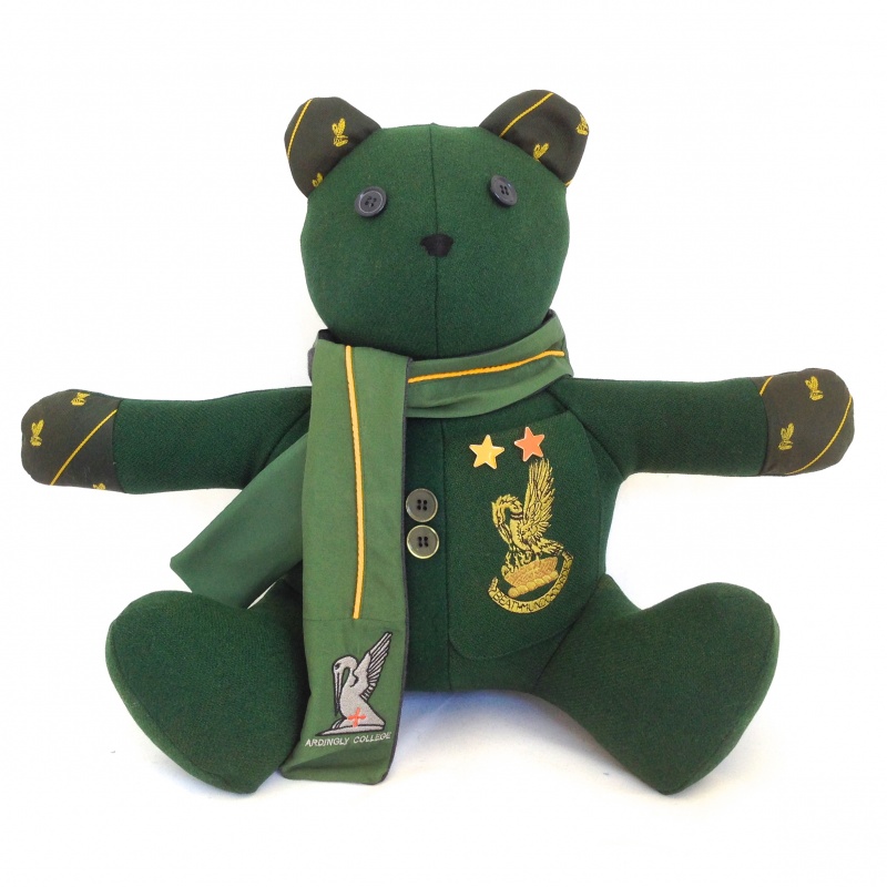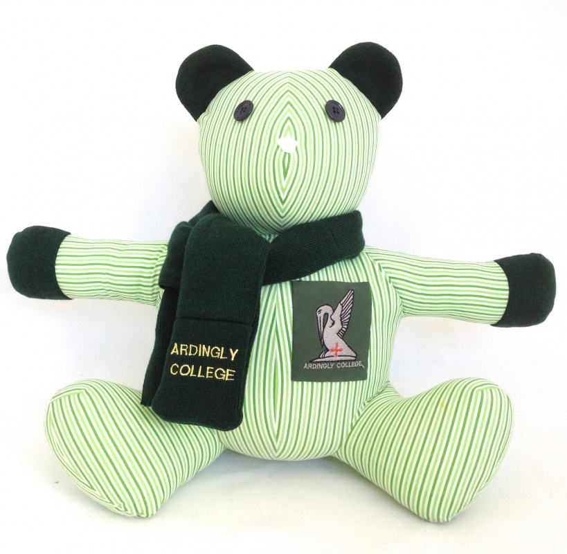 Recently we made two lovely Blazer Bears for Ardingly School. The first was made from the gorgeous green blazer and we used the tie with the Ardingly School emblem on for the ears and paws. We then used the tracksuit with the distinctive yellow piping for a scarf again incorporating the school crest. The green and yellow uniform is the Prep School colours but for the senior school has dark blue and yellow. We are soon to be making their keepsake bear.